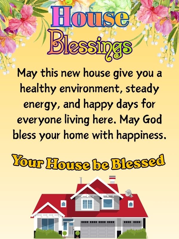 - I hope this new house gives you a healthy environment, steady energy, and happy days for everyone living here. May God bless your home with happiness.